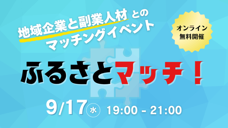 地域企業 × 副業・兼業人材 オンラインマッチングイベント『ふるさとマッチ!』開催