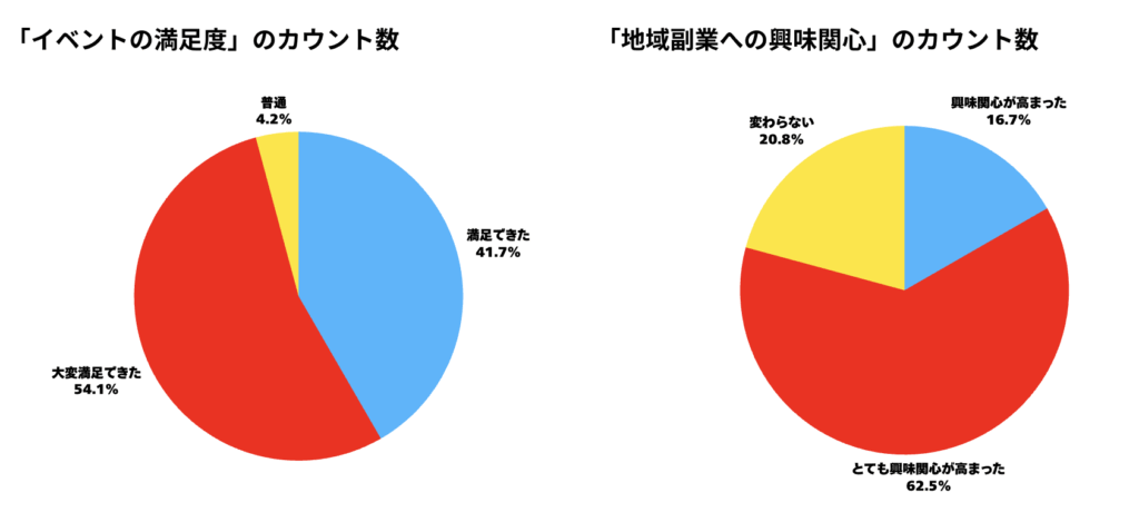 参加者の満足度は約96%、約79%の方が地域への興味関心の高まりがありました。