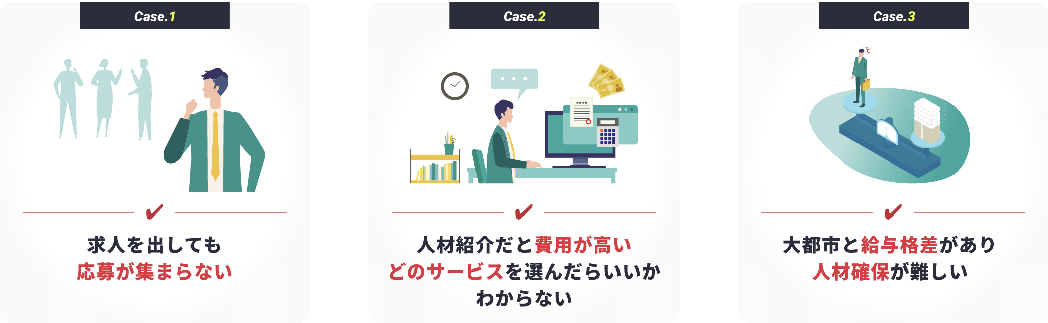 - 市町の人口が少なく、転職者数も限られているため、ハローワークから自社への応募が全く来ない状態だった。また、企業の魅力を伝える効果的な求人訴求ができていなかった。